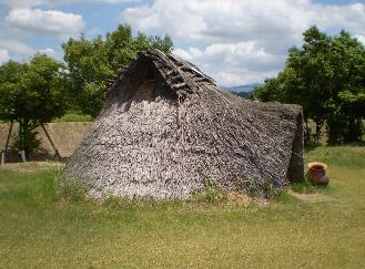 Japaner lebten aber nicht schon immer in Wolkenkratzern und Burgen. Dies ist das Bild der Rekonstruktion eines "Wohnhauses" von vor ca. 2.000 Jahren. Aus archäologischen Funden nimmt man an, dass die Häuser zu dieser Zeit in etwa so aussahen. Gleich nebenan befindet sich übrigens das "älteste Reisfeld Japans".
